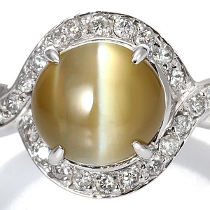 プラチナ クリソベリル キャッツアイ リング(CC3.51ct D0.18ct・最上級)