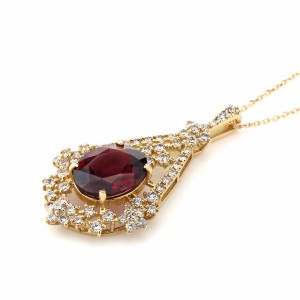 K18 ロードナイト・ガーネット ダイヤモンド ネックレス (ラージサイズ)(RG 3.16ct D 0.68ct・美しいパープルがかった濃い「赤」)