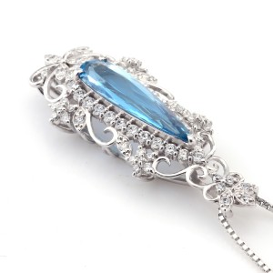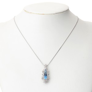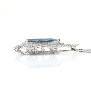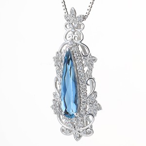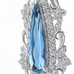 長い独特の形状のアクアマリンを引き立ててくれるお洒落なデザインで丁寧に仕上げられています。