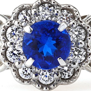 最上級の深い色味ながら、透明感も感じられる貴重なアウイナイトをキレイなダイヤモンドを使用したお洒落なデザイン枠にセットしております。